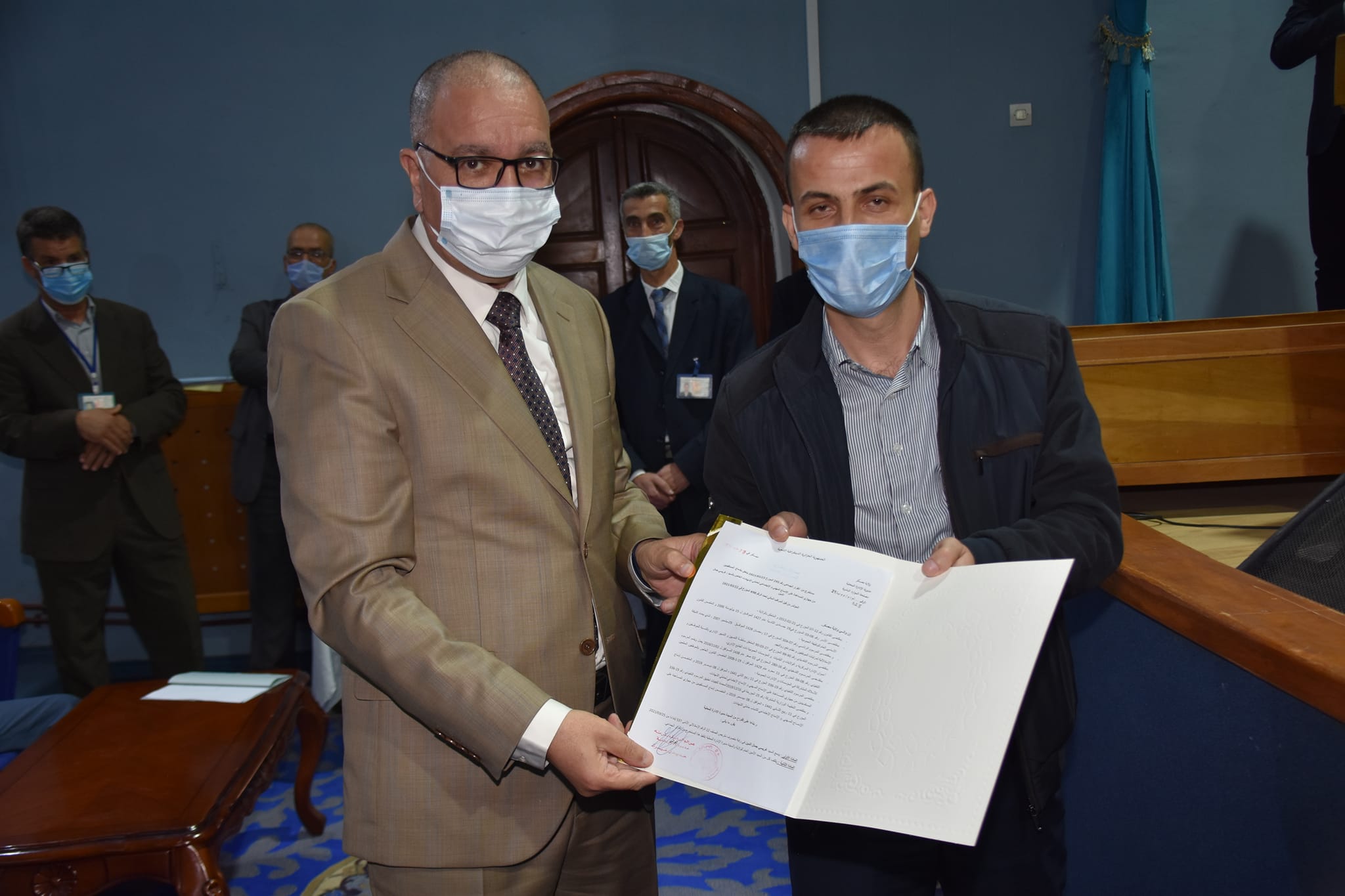 تسليم شهادات مقرارات الادماج للمستفيدين من جهاز الإدماج المهني و الإجتماعي