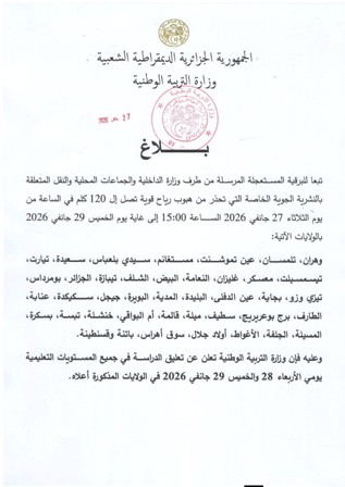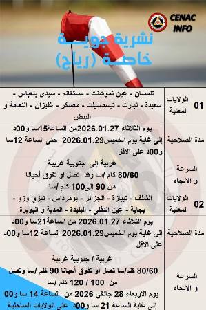 ⏰ صلاحية النشرية: ابتداءً من يوم الأربعاء 28 جانفي 2026 على الساعة 19:00 إلى غاية الخميس 29 جانفي 2026 على الساعة 01:00