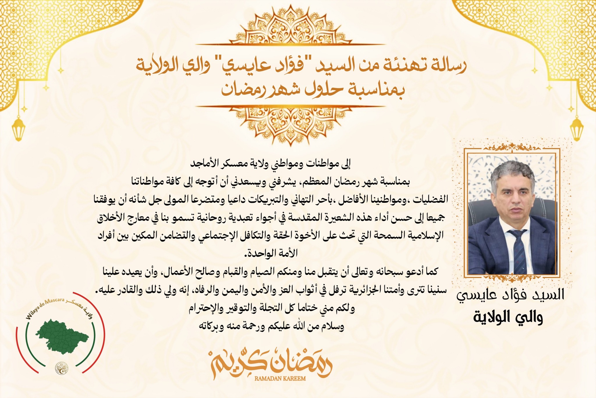 تهنئة والي_ولاية_معسكر السيد فؤاد_عايسي بمناسبة حلول شهر_رمضان_المعظم.
