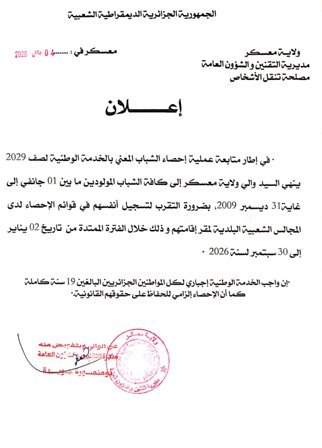 في إطار المتابعة الميدانية المستمرة لوضعية قطاع النقل عبر إقليم الولاية، تنقّل صباح اليوم السيد عايسي_فؤاد، والي الولاية، إلى المحطة البرية بمدينة معسكر، حيث وقف شخصيًا على استئناف نشاط الناقلين، في خطوة تهدف إلى ضمان استمرارية الخدمة العمومية وتحسين ظروف تنقل المواطنين.