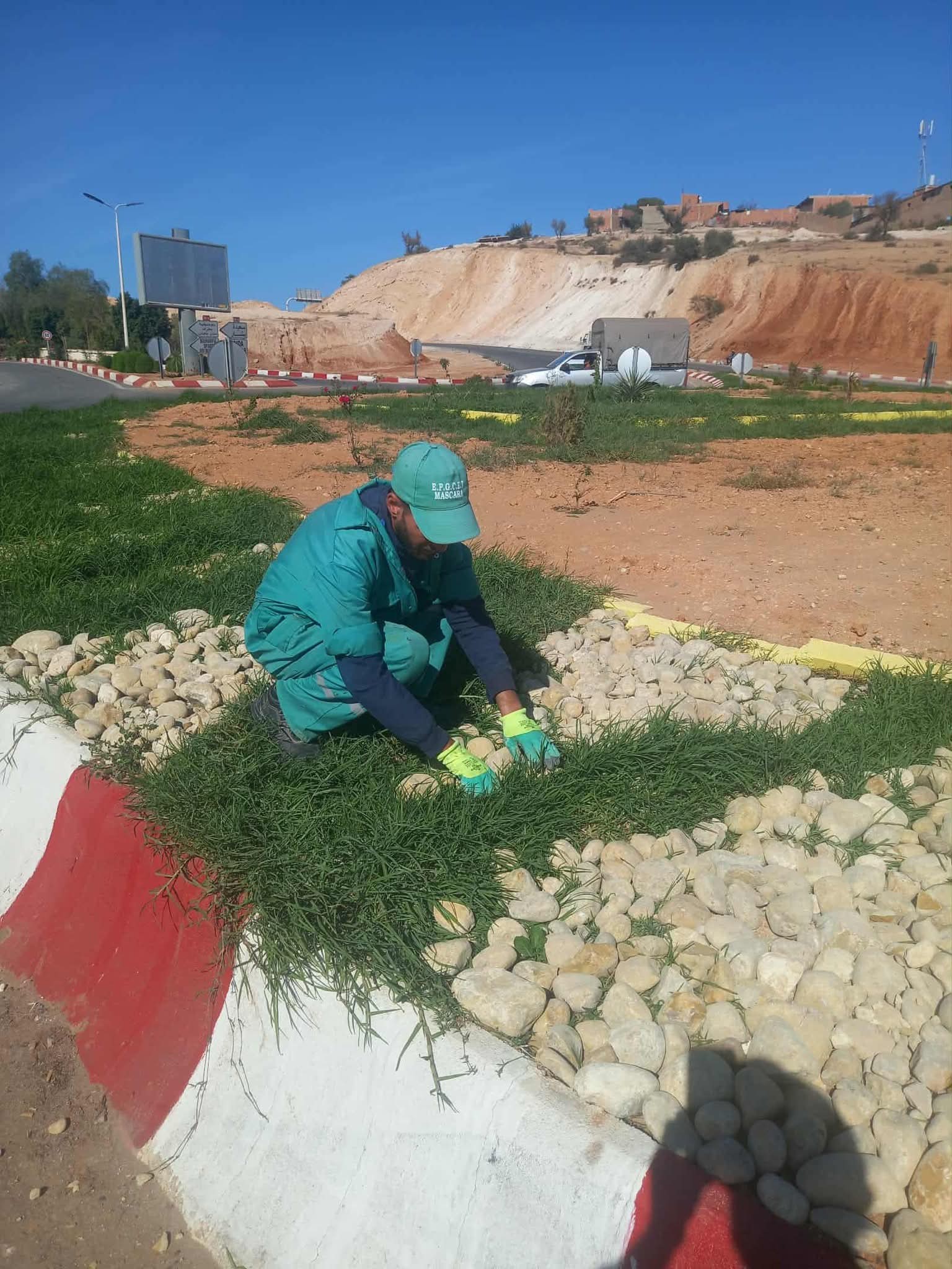 غرس النباتات التزيينية بالأحواض المخصصة أمام مقر بلدية معسكر ومحاور الدوران بأحياء العرقوب والخروبة.