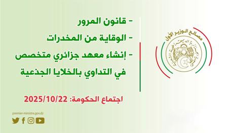 ترأس الوزير الأول، السيد سيفي_غريب، هذا الأربعاء 22 أكتوبر 2025، اجتماعًا للحكومة خصص لدراسة النقاط الآتية: