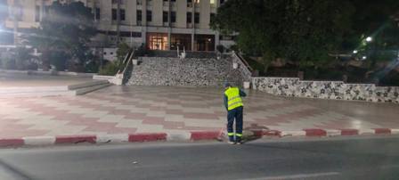 الكنس، التنظيف، ورفع النفايات بالساحات العمومية ووسط مدينة معسكر.