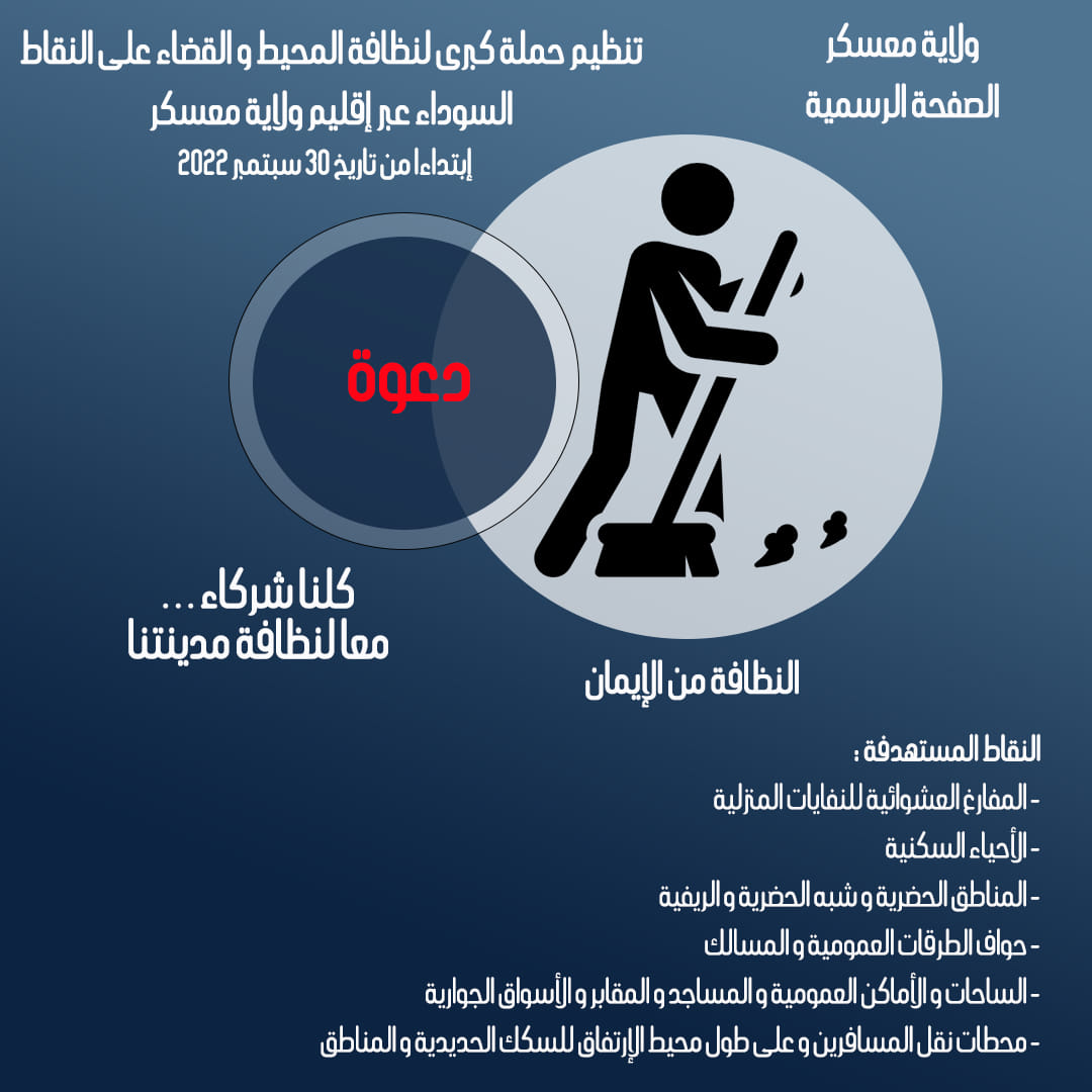 بمبادرة من وزارة الداخلية و الجماعات المحلية و التهيئة العمرانية و تحت إشراف السيد والي الولاية تنظيم حملة كبرى لنظافة المحيط و القضاء على النقاط السوداء