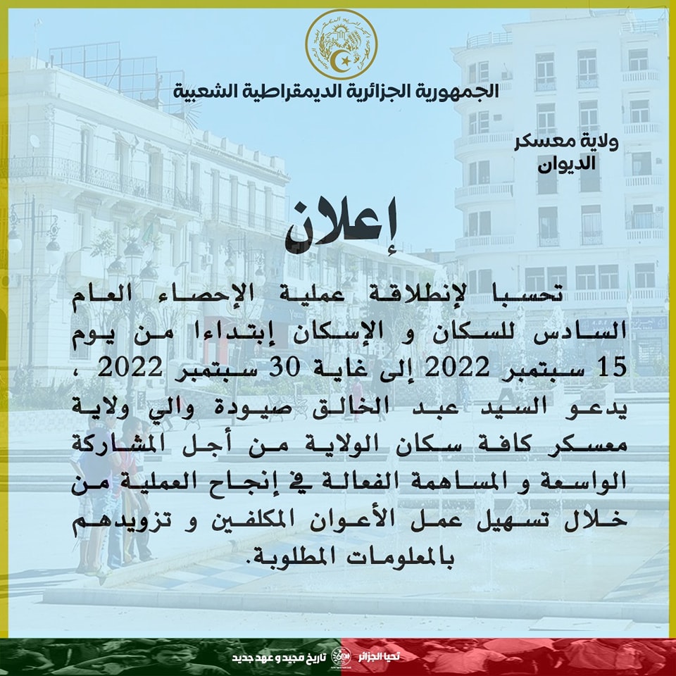 • الإعلام و الاتصال: إن نجاح هذه العملية مرتبط بإشراك كافة المتدخلين و الفاعلين قصد ضمان حملة تحسيسية واسعة و ذلك من خلال: - إلصاق المطبوعات الرسمية المتعلقة بالعملية و التي ستعد لهذا الغرض على مستوى المرافق المستقبلة للجمهور، و الأماكن العمومية التي تشهد توافد المواطنين. - المشاركة الواسعة للمحتويات الإعلامية و الترويجية التي ستعد عبر وسائل الإعلام المحلية، و جميع صفحات التواصل الاجتماعي المؤسساتية. - الاتصال الجواري و مباشرة عمليات تحسيسية جوارية للإعلام عن انطلاق العملية و تبسيط إجراءات و شرح محتواها و أهدافها على مستوى الأحياء السكنية، و القرى و المداشر مع إعطاء الأهمية للمجمعات السكنية الجديدة و المناطق المعزولة، على أن تتم هذه الحملة الجوارية بإشراف جميع الفاعلين المؤسساتيين على المستوى المحلي، و كذا بالتعاون مع الأعيان و ممثلي المجتمع المدني سيما الكشافة الإسلامية الجزائرية، الجمعية الوطنية لحماية المستهلك، الجمعيات المحلية، و لجان الأحياء. - تسطير مخطط إعلامي محلي خاص بالعملية عبر وسائل الإعلام المسموعة و المرئية، سيما الإذاعات المحلية، يتضمن برامج إعلامية و تحسيسية و روبورتاجات عن التحضير و سير العملية على المستوى المحلي. في الأخير يجب التنويه إلى أهمية العملية التي تكتسي بعدا وطنيا يستوجب تظافر جميع الأطراف و بذل المزيد من المجهودات من أجل إنجاح هذه العملية التي تعود بدورها بالإيجاب على الإقتصاد الوطني من أجل ضبط جميع المؤشرات الإجتماعية و الإقتصادية و المساهمة في إتخاذ القرارات و كذا وضع سياسات قطاعية تعتمد على نظرة إستشرافية. في الاخير اوصى السيد والي الولاية بوجوب الوقوف على انجاح هذه العملية الوطنية و عدم ادخار اي جهد في ذلك و تحمل المسؤوليات كاملة.
