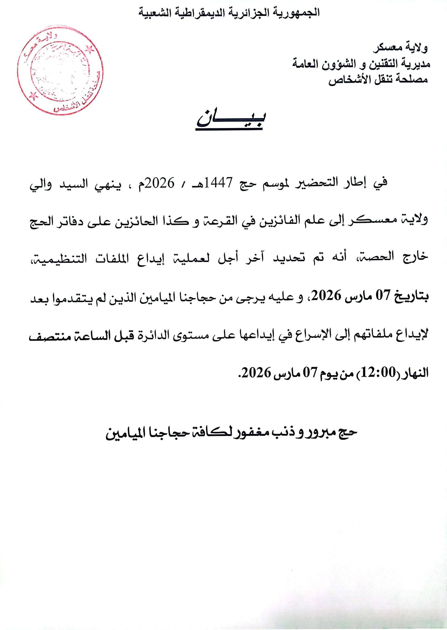 في أجواء مهيبة طبعها التأثر والخشوع، تنقل السيد عايسي_فؤاد والي ولاية معسكر، إلى بلدية سجرارة، لتقديم واجب العزاء والمواساة إلى عائلة الفقيد المرحوم بطيشة حبيب، رئيس المجلس الشعبي البلدي لبلدية سجرارة، الذي انتقل إلى رحمة الله.